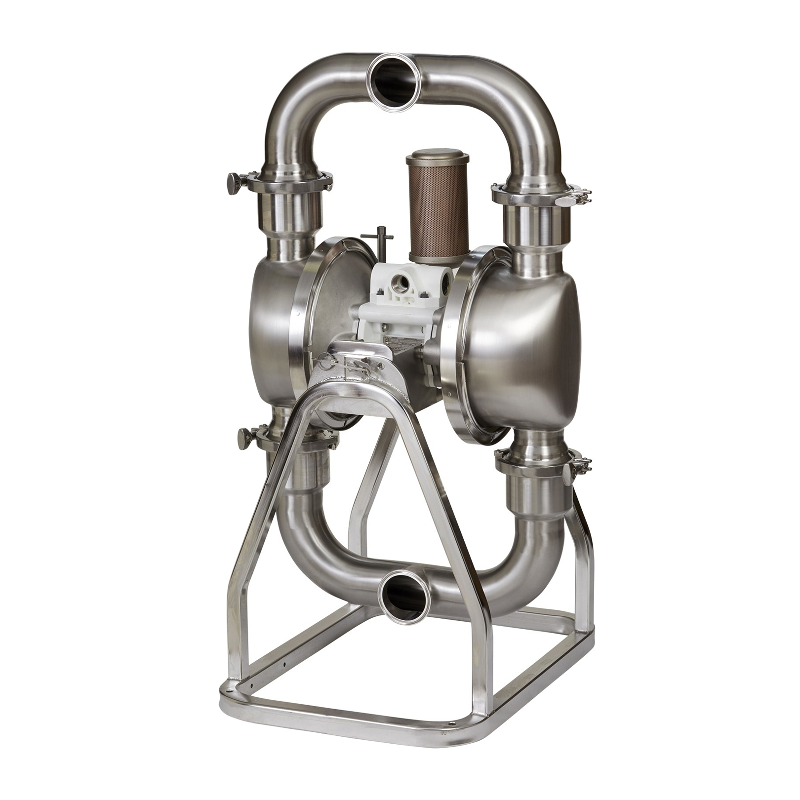 SaniForce™® pneumatic diaphragm pumps are designed to meet requirements for the most rigorous food, beverage, personal care, and pharmaceutical transfer applications. SaniForce™® AODD pumps reduce the amount of tri-clamps and gaskets utilized in the fluid path creating a pump that is easier to sanitize and clean as well as quicker and easier to disassemble and maintain. Handle solids up to 3.8 inches in diameter and allow for vertical and horizontal pump installation. 316L stainless steel fluid section and multiple elastomer options provide flexibility to handle almost any material and cleaning chemical. Elastomer options for high temperature fluids or steam cleaning options.