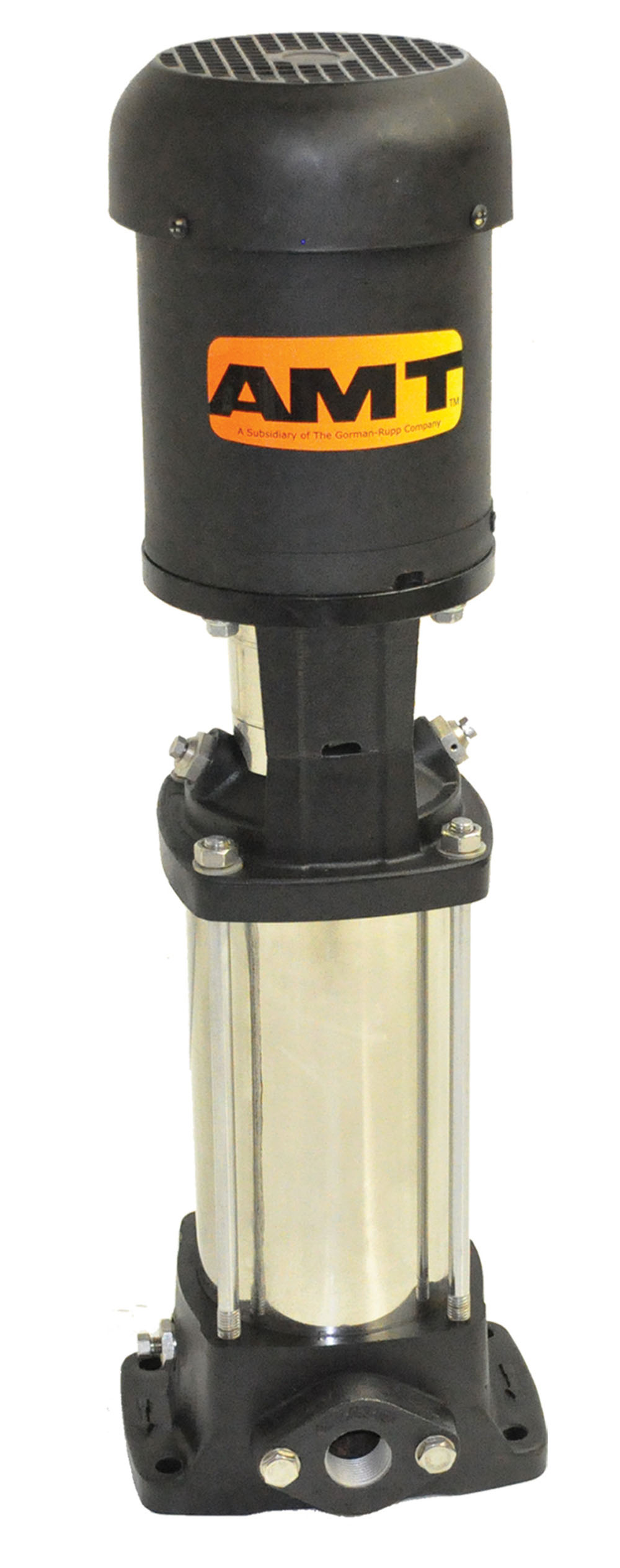 AMT® commercial/industrial centrifugal Pumps are non-self-priming (gravity feed) units designed to handle high-pressure low flow liquid transfer applications where no suction lift is required. Typical installations include: hot and chilled water, boiler feed, condensate return, irrigation, high pressure washdown, booster service, and fire protection/ sprinkler systems. This type of pump is often referred to as a Jockey Pump. Maximum inlet pressure 335 Ft./145 PSI [1000 kPa].