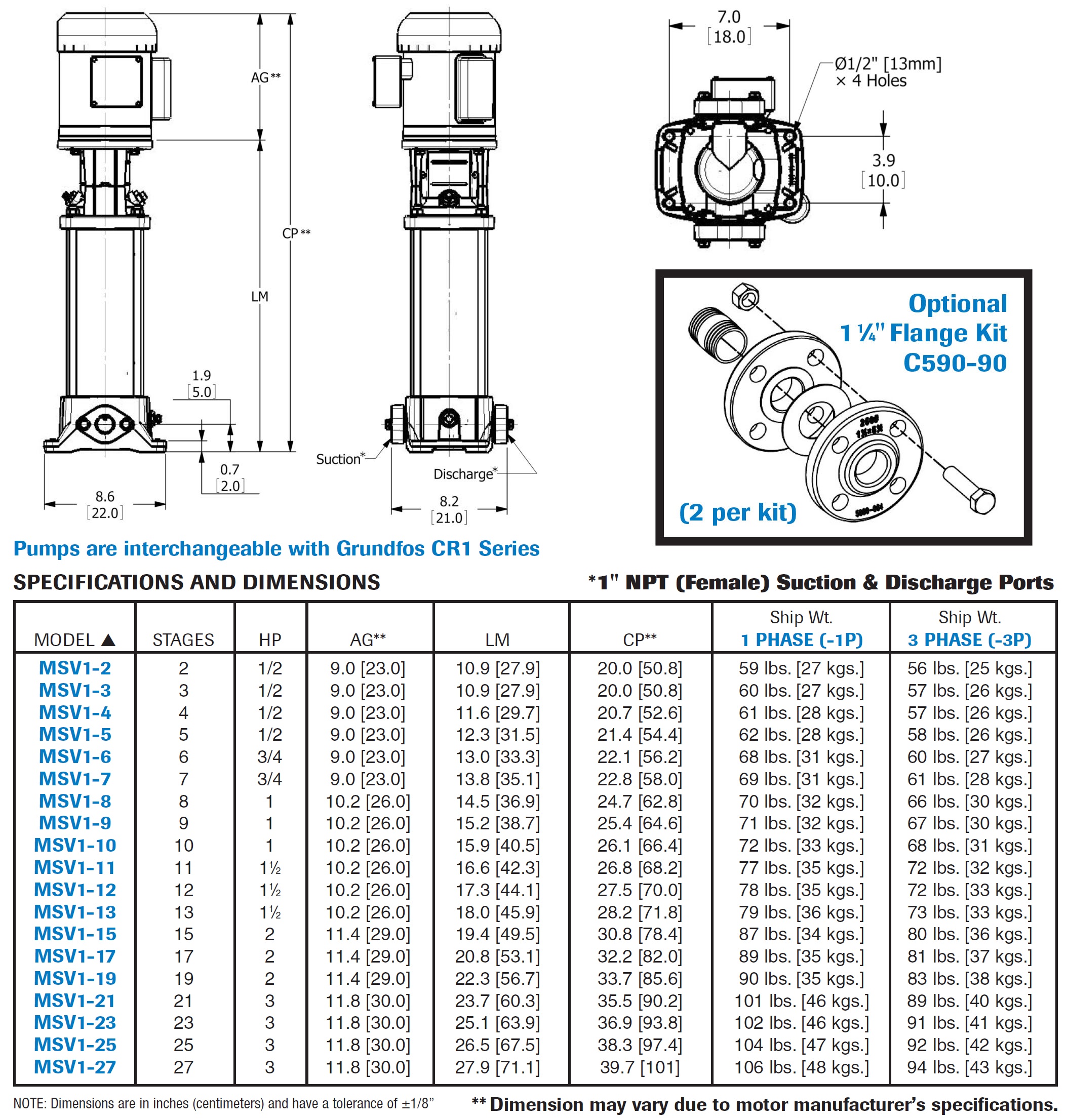 These pumps have NOT been investigated for use in potable (drinking) water systems. Links to repair kits and optional equipment (where available) are located at the top and bottom of this page for your convenience.* AMT® MSV1-21-3P